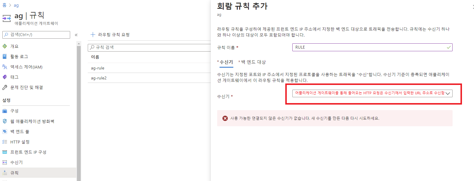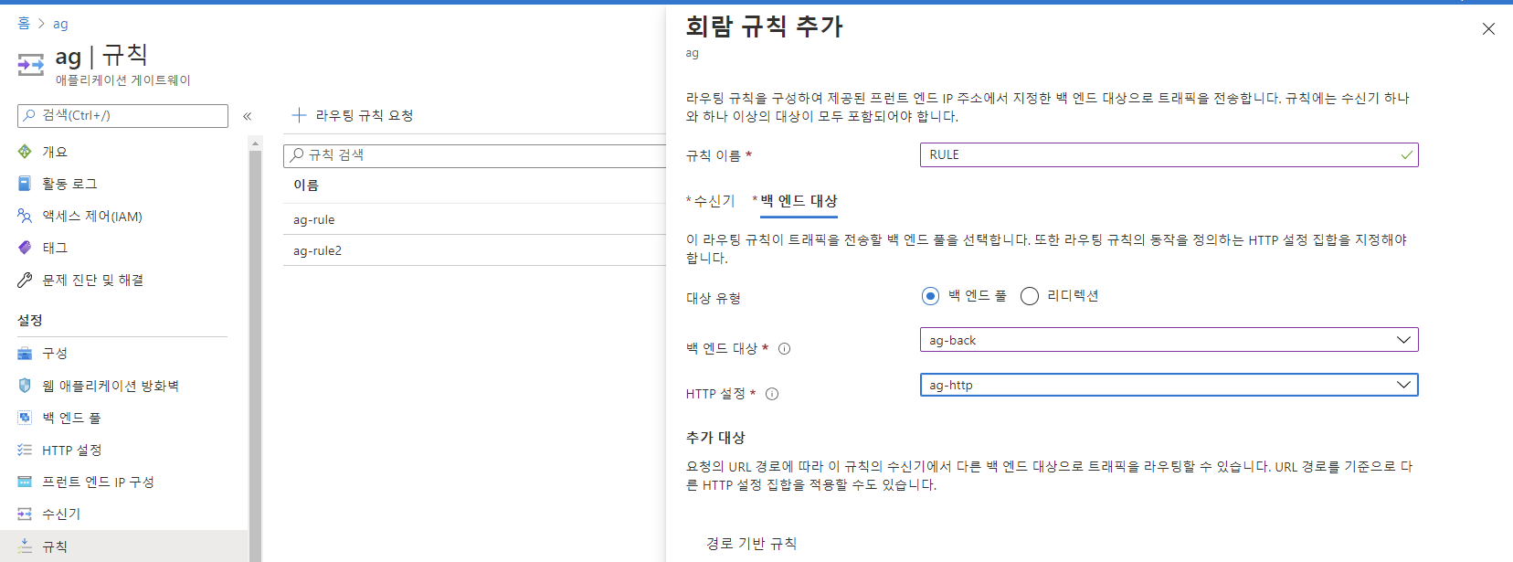 ![]() → 규칙 생성중 백엔드 대상을 설정 합니다 ![]() ![]() |