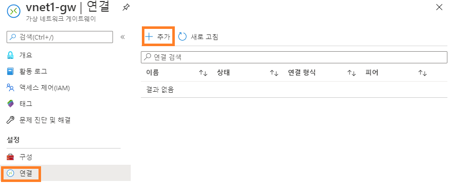 - 연결 → 추가 → Vnet1 게이트웨이선택