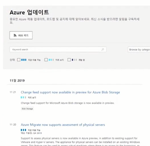 b. 공개 미리보기: 모든 Azure 고객에게 Azure 서비스를 제공하는것 추가로, 미리보기 기능(Preview)을 제공할때는 50%정도 할인 받아서 사용할 수 있고, 또한 기술지원은 받을수 없다