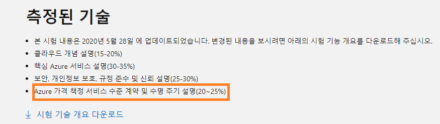 필요기술 (4) - Azure 가격 책정 서비스 수준 계약 및 수명 주기(지원) 설명(20~25%)