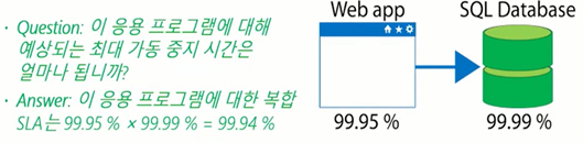 ex) Azure SQL server 를 사용하면 99.99% 가용성을 보장한다. → 이를 충족 못할경우 크래딧을 제공 받을 수 있다.