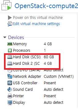 echo "- - -" > /sys/class/scsi_host/host2/scan 명령어를 이용해 새로이 할당된 4GB 경로를 바꿔 60GB(Hard Disk)에 추가해준다.
