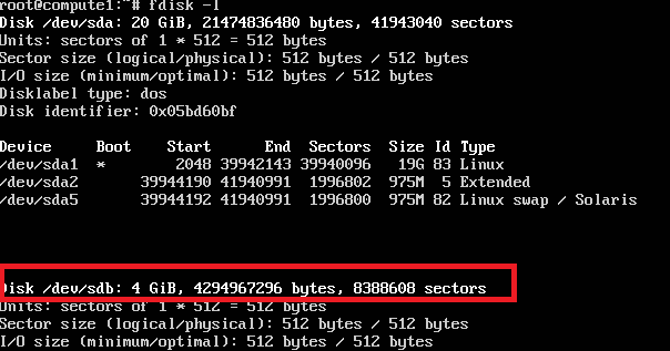 3. 추가한 디스크가 잘 추가인식 되었는지 fdisk -l을 이용해 확인한다.
